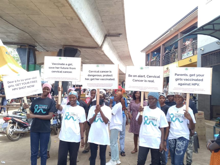 During the sensitisation exercise, members of Curious Minds carried placards with messages such as: “Vaccinate a girl, save her future from cervical cancer,” “Parents, get your girls vaccinated,” and “Healthy girls, strong future: Say yes to HPV vaccination,” while engaging traders, shoppers, and passersby on the upcoming HPV vaccination exercise.