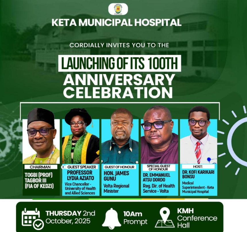 The Keta Municipal Hospital in the Volta Region is gearing up to launch a significant milestone, a 100th anniversary, scheduled to take place on Thursday, October 2, 2025.