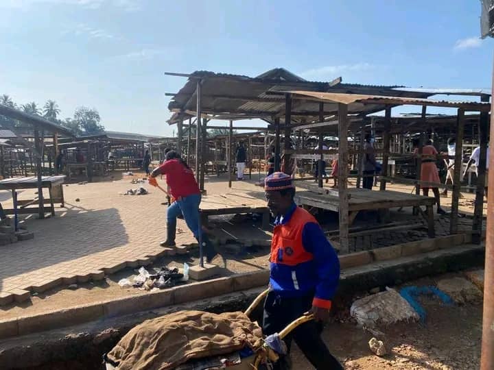 The official launch, held at the Juapong Market, brought together staff of the District Assembly, the Presiding Member, the District Coordinating Director, Environmental Health Officers, representatives of Zoomlion Ghana Limited, the Ghana National Fire Service, and other key stakeholders.