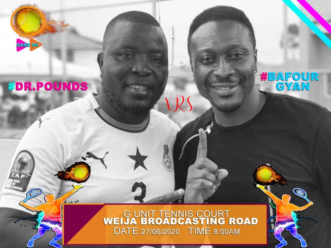 Media personality Dr. Pounds will come face-to-face with former Black Stars striker Baffour Gyan in a tennis match on June…