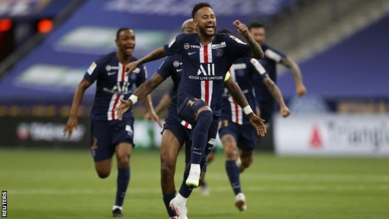 Paris St-Germain beat Lyon on penalties in the French League Cup final to seal a fourth domestic treble in six…