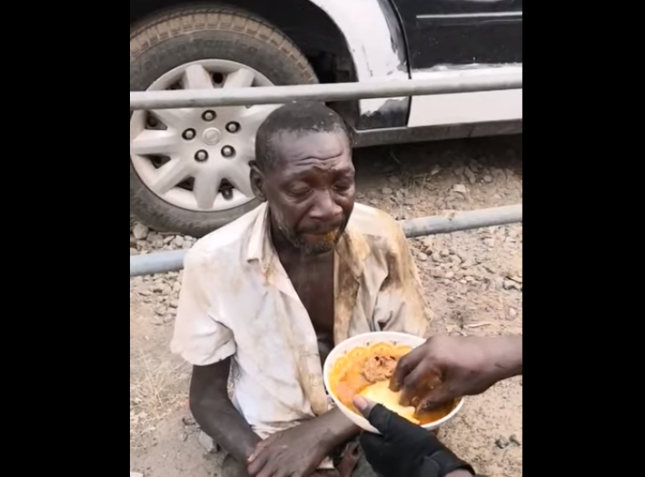 A Ghanaian police officer has been praised after he was captured feeding a poor man who was starving on the…